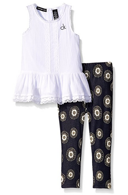 �(yōu)惠力�:這款Calvin Klein 卡爾�?克萊� Crinkled Gauze 小清新女童套�,面料為60%棉混40%滌綸。上衣為褶皺小裙擺設(shè)�(jì),上身俏效果更好,領(lǐng)�、袖口和下擺�(diǎn)綴的蕾絲邊有種公主風(fēng)的感覺~下身打底褲的太陽花印花可愛俏皮,搭配白色上衣,活潑中不失�(yōu)�。可以機(jī)�,后期打理方便省�。無論是買給自己的寶寶,還是送給別人家的孩紙,都是不�(cuò)的選擇~原價(jià)$49.5,現(xiàn)�4碼特�(jià)�$10.99,約74��
