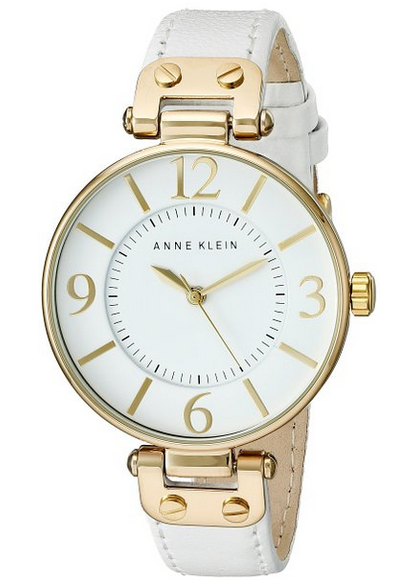 �(yōu)惠力�:Anne Klein是近日大熱的品牌,特別是它家的手表款式時(shí)尚價(jià)格又適中,受到了大批年輕女性的喜愛。石英表盤搭配白色腕帶簡約又不失品位,適合白�(lǐng)等上班族使用。這款手表采用日本石英�(jī)芯與真皮表帶,以及表盤直徑是34.25mm,需要購買手表的女生可以考慮購買。原�(jià)$55,現(xiàn)特價(jià)$49.5,約333��